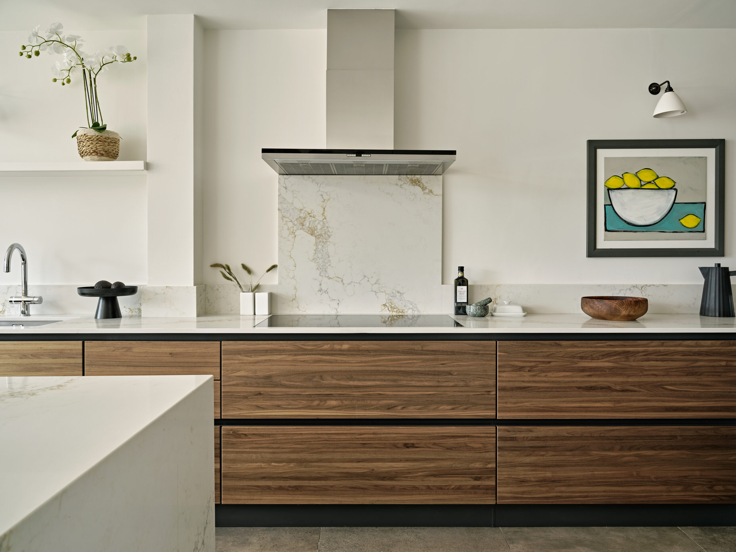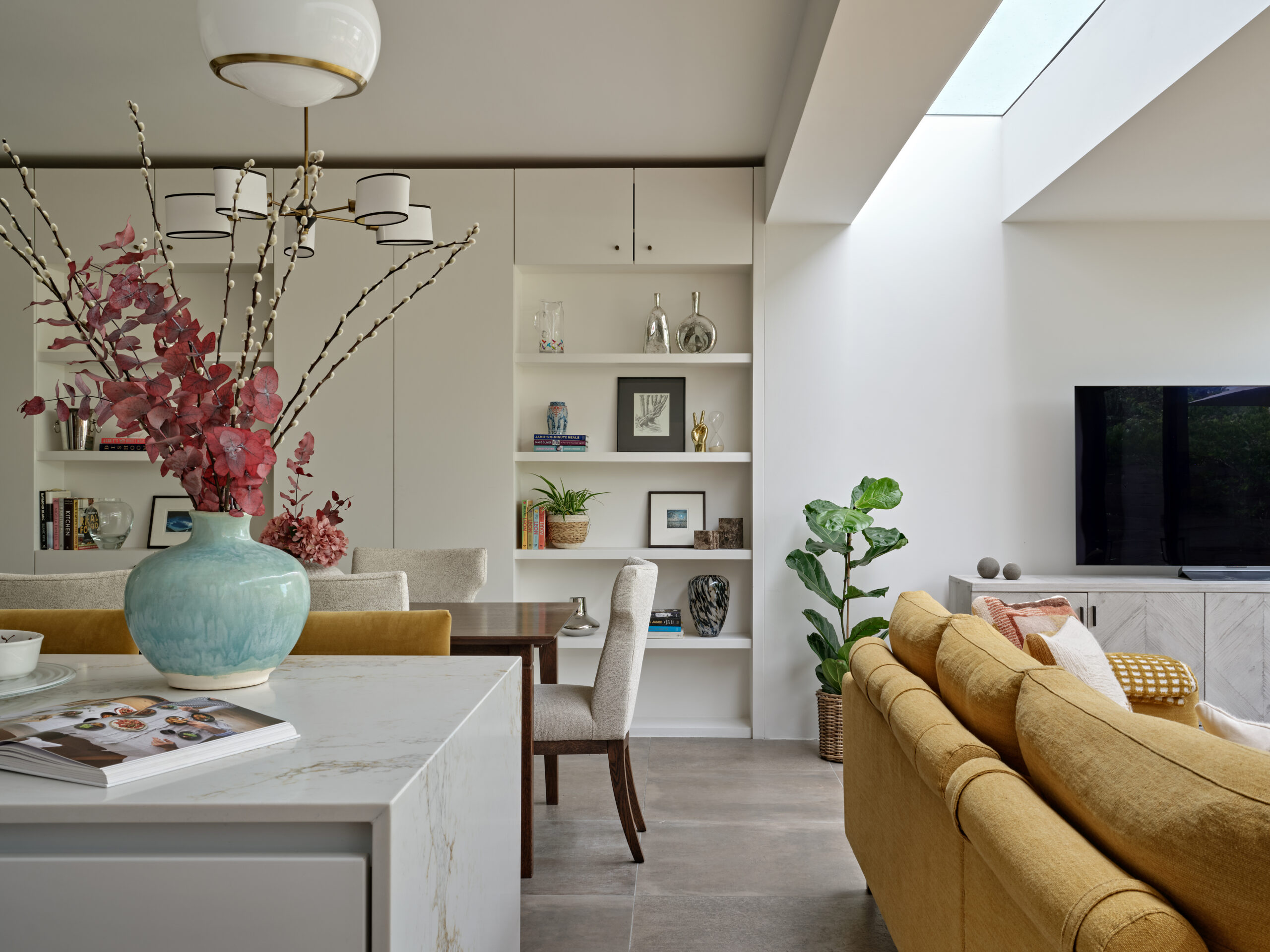 Garrity was responsible for delivering the bespoke joinery elements and construction work throughout the home, carefully executing the design vision through finely crafted built-in furniture. This included custom bookshelves, fitted wardrobes, and a modern bespoke kitchen designed to act as the functional heart of the property. High-end materials and rich finishes were used throughout, bringing depth, cohesion, and a refined sense of luxury to the completed home.